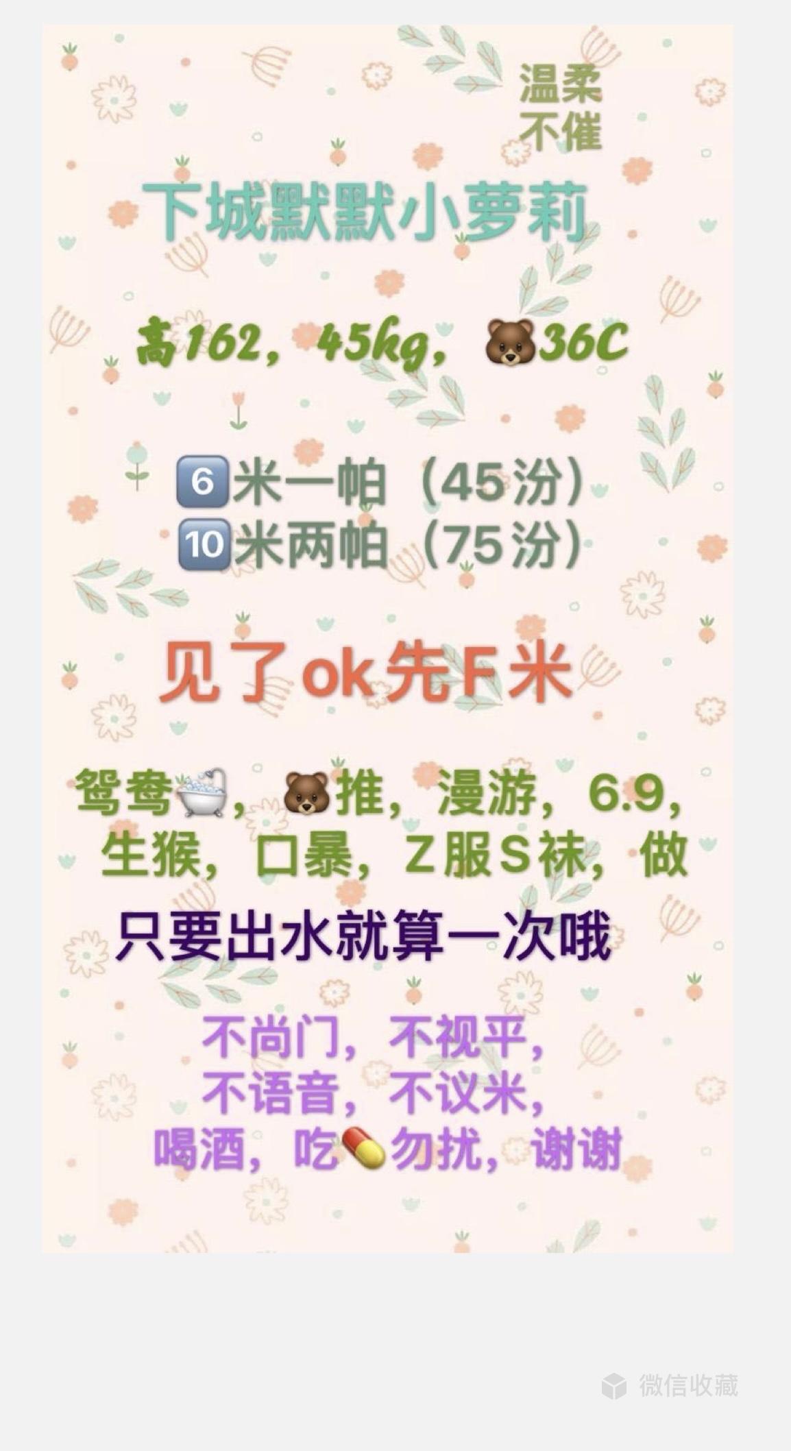 【服务项目】:鸳鸯浴,漫游,胸推,69式,口活,爱爱,出水就算一次